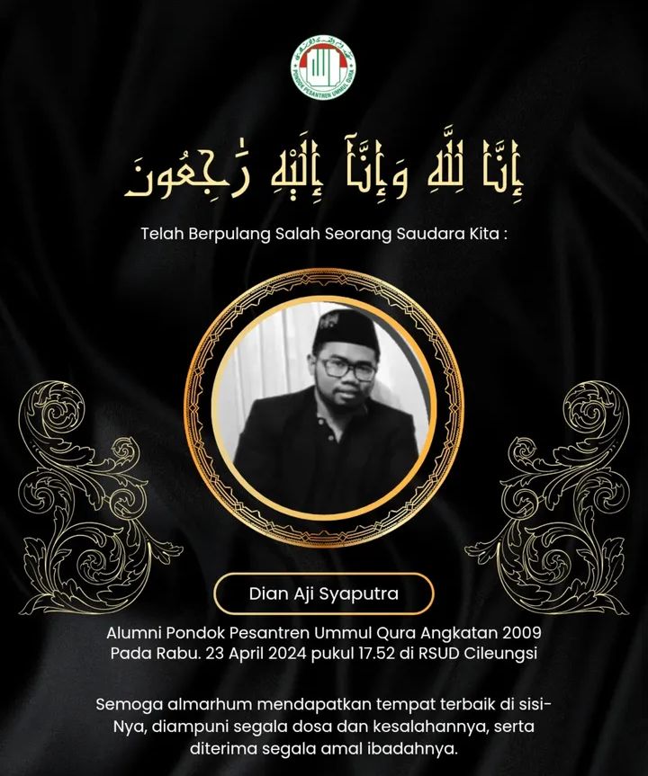BOGOR, 24 April 2025 — Duka mendalam menyelimuti keluarga besar Karang Taruna Kabupaten Bogor atas wafatnya Dian Aji Saputra, sosok yang dikenal luas dengan sapaan akrab Gus Azis. Ketua Karang Taruna Kecamatan Klapanunggal ini berpulang ke rahmatullah pada Rabu (23/04/2025) sekitar pukul 17.30 WIB di RSUD Cileungsi, Kabupaten Bogor, tepat di usianya yang ke-33 tahun.